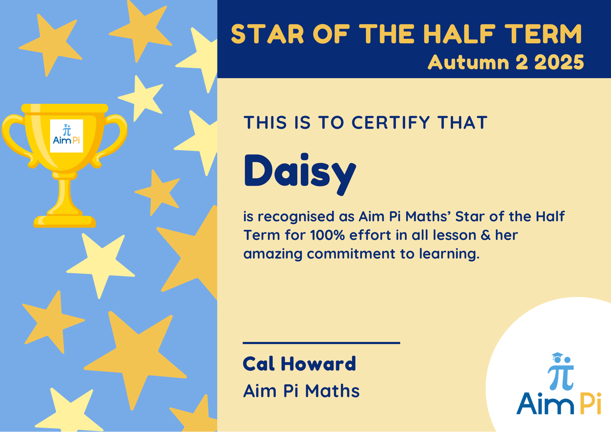 If Aim Pi Maths has inspired you to achieve your goals please contact us so we can share you success.